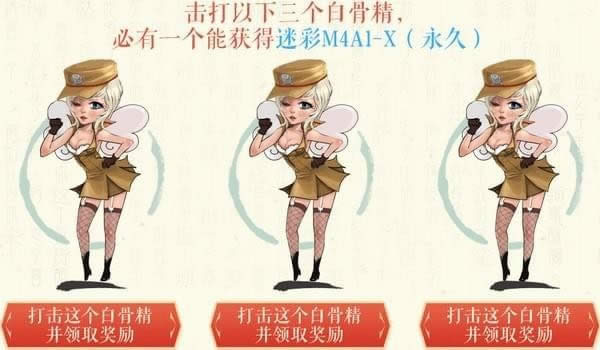 游戏一局,玩家可选择任意1个白骨精击打,并领取相应的道具,领完为止。每天仅能打一个白骨精。
