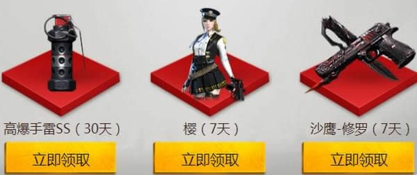 幸运用户可任意选择【四个道具领取】,每个道具只能领取一次哦