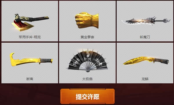 (为自己或战友心仪武器许愿,排名最高武器将在下期与大家见面;每个用户可提交1次许愿)