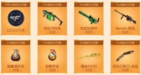 活动时间,用户使用心悦积分抢兑道具,每个道具仅可抢兑1次,数量有限抢完即止。