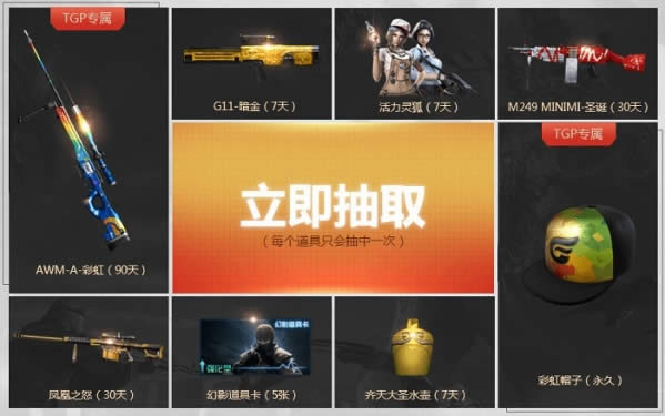 活动期间,当日通过TGP启动过CF即可进行1次抽奖,活动期间最多可以抽取8次。
