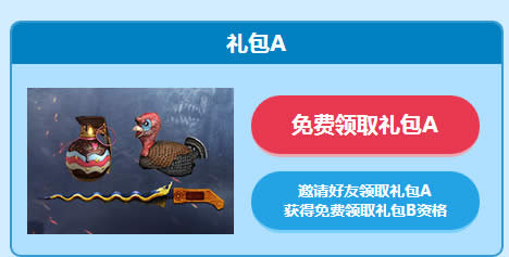 1.免费礼包 CP同领福利翻倍免费领取礼包A并邀请好友领取礼包A后可领取礼包B