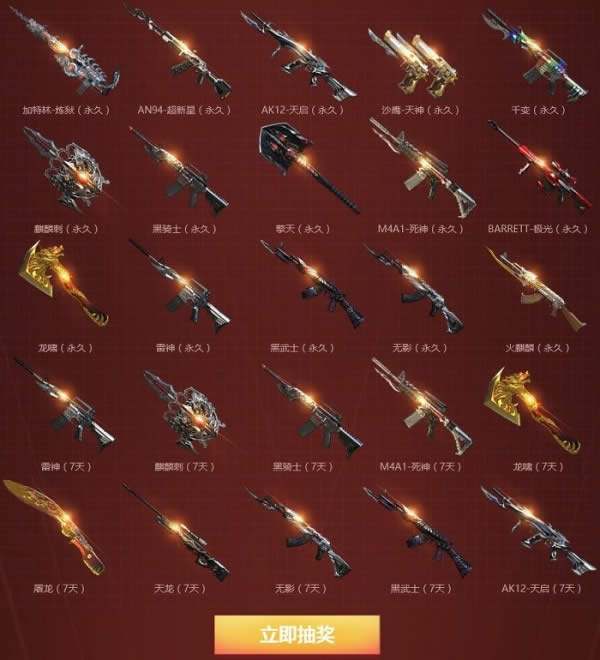 8月5日、8月6日,任意一天,加入任意一局游戏,(1小时后)可立即抽取一件英雄级武器。每个QQ号活动期间仅限抽取一次。