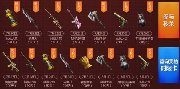 7月20日至8月3日,每日加入任意游戏一局,即可获得报名秒杀,每天20W份时限卡发发发。