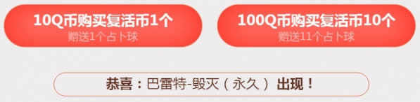 1.10Q币购买复活币1个可获得1个占卜球,100Q币购买复活币10个可获得11个占卜球;