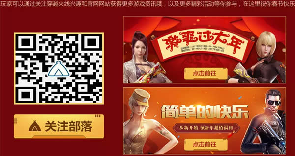 玩家可以通过关注穿越火线兴趣和官网网站获得更多游戏资讯哦,以及更多精彩活动等你参与,在这里祝你春节快乐。