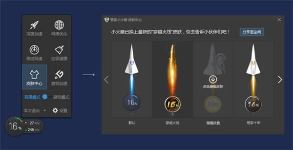 2、将小火箭的皮肤更换为“穿越火线”皮肤