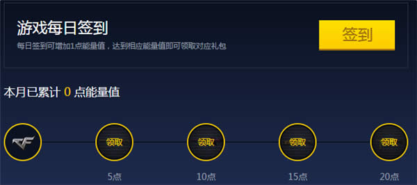 每日签到可增加1点能量值,达到相应能量值即可领取对应礼包