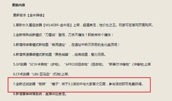 最新爆料:CF新版本将加入铁锤武器新在五一活动中获得