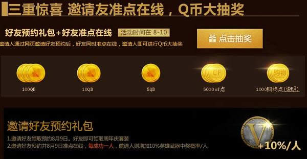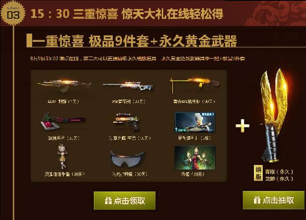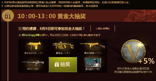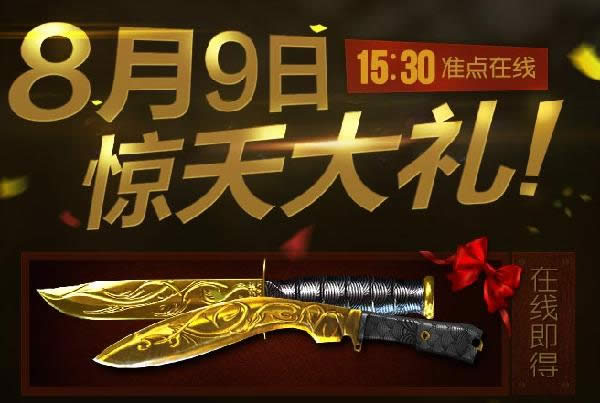 cf最新活动8月9日惊天大礼,只要你8月9日当天下午3点半准时在线,就有永久黄金武器拿!
