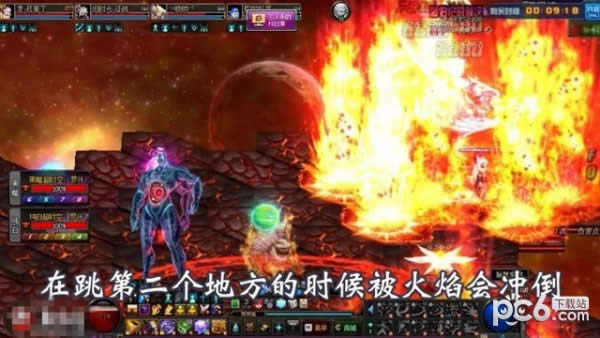 当火地板出来之后,我们在跳的时候一定,就是刚开始就要跳,不要等着火烧你再跳,这时候会大幅度掉血