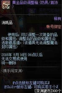 使用后,可以调整一次装备的品级和属性,调整后的品级和属性会选取最高值。
