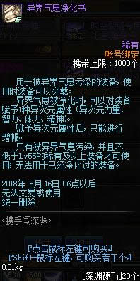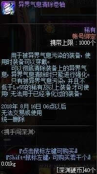 用于被异界气息污染的装备,使用时装备可以穿戴。