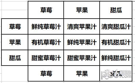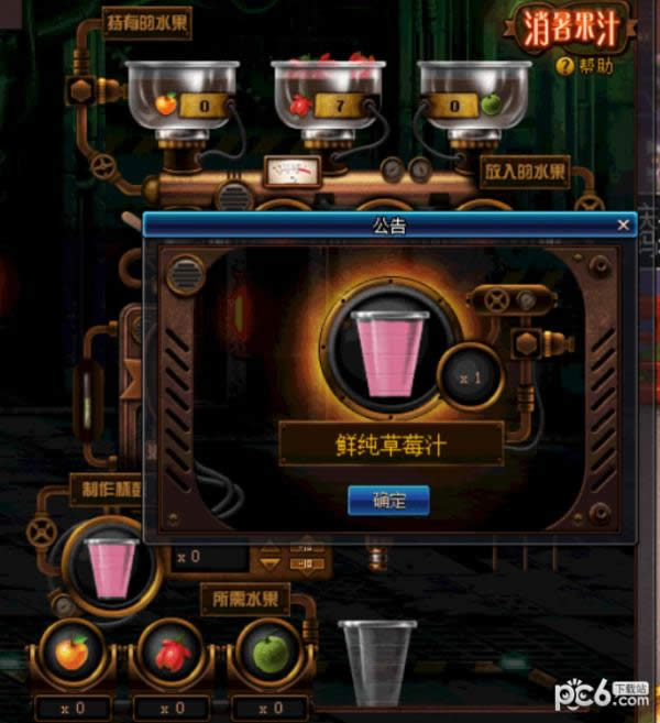 3.以方向键选择水果放入,可以连续放入相同的水果放入水果后选择制作的果汁杯数,根据选择的水果在背包的内的数量限制最大制作杯数不同的水果组合可以制作出不同种类的果汁,还会有概率出现神奇鲜果汁