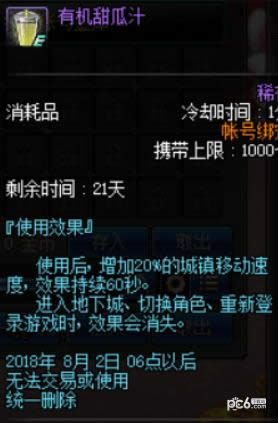 90 分钟 (3/4)[活动]甜瓜礼盒 1个开启后, 可以获得10个[活动]甜瓜。使用后, 增加5%的攻击速度、 施放速度和移动速度。返回城镇、 在地下城中死亡、 切换角色、 重新登录游戏时, 效果会消失。