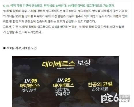Q15:这次新版本,加快了毕业时间,以及便利性改版,请问,90级装备是否可能升级为95级装备?