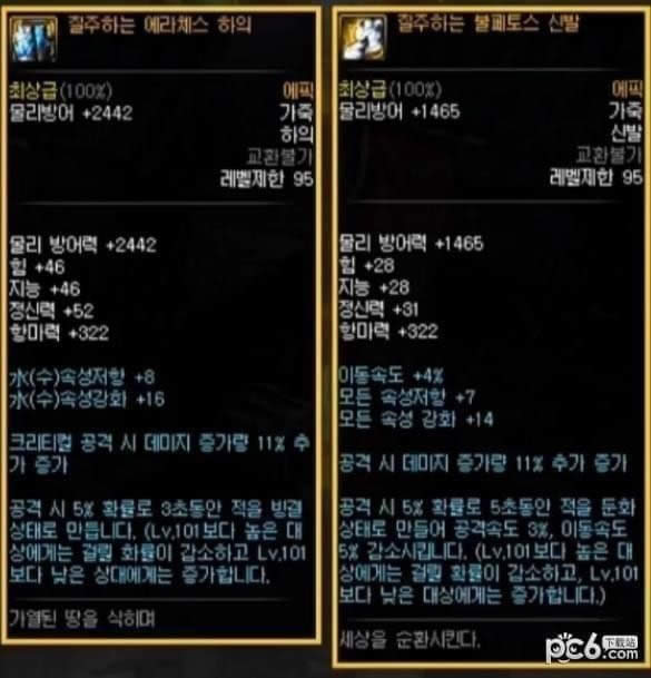 皮甲 - 下装:冰抗+8,冰强+16,暴击时,额外增加11%的伤害增加量,攻击时对敌人附加冰冻