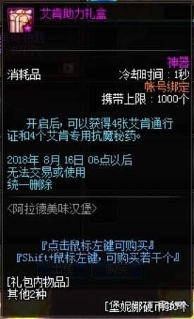10艾肯助力礼盒开启后, 可以获得4张艾肯通行证和4个艾肯专用抗魔秘药。每账号10个