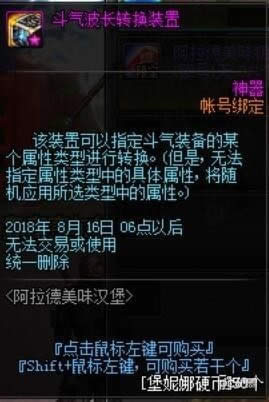 50斗气波长转换装置该装置可以指定斗气装备的某个属性类型进行转换。 (但是, 无法指定属性类型中的具体属性, 将随机应用所选类型中的属性。)每账号2个