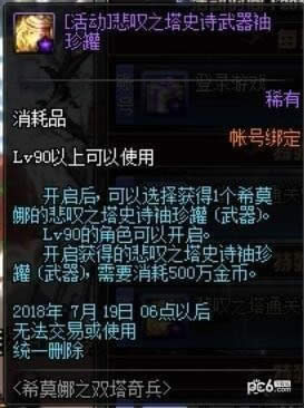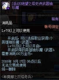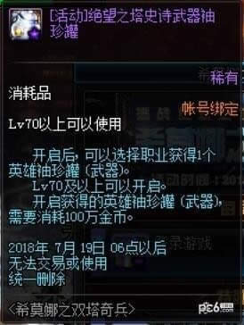 为各位带来dnf希莫娜之双塔奇兵活动介绍2018,即将上线的新活动参与其中的玩家们将可以获得史诗袖珍罐,下面我们就来看一看dnf希莫娜之双塔奇兵奖励详情吧,大家可别错过了。
