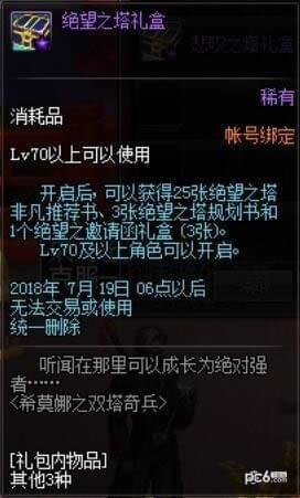 开启后, 可以获得25张绝望之塔非凡推荐书、 3张绝望之塔规划书和1个绝望之邀