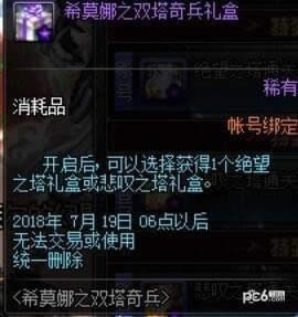开启后, 可以选择获得1个绝望之塔礼盒或悲叹之塔礼盒。