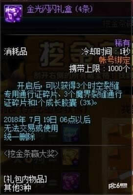 开启后, 可以获得3个时空裂缝专用通行证碎片、 3个魔界裂缝通 行证碎片和1个Lv50~88可用的成长胶囊 (3%)。