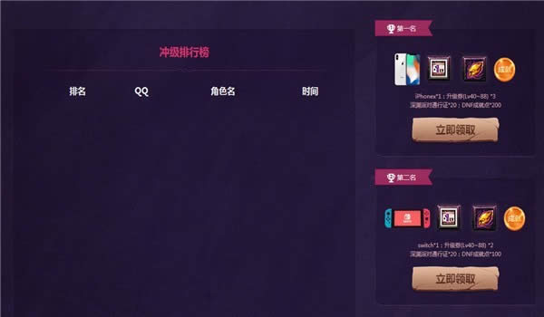 3: 枪剑士角色达到90级可领取满级大礼,且在本页面进行“敲锣”后会记录达成时间,根据时间顺序进行排名,