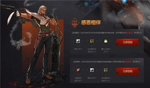 1.感恩相伴,6月19日创建的新职业枪剑士可以领取礼包一份