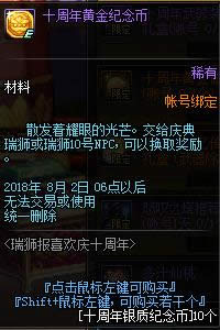 1.活动期间,Lv17及以上的角色在推荐地下城中会获得十周年银质纪念币每日每账号最多可以获得100个,每日凌晨6点重置,点击庆典瑞狮可以传送到赫顿玛尔的活动NPC瑞狮10号处参与小游戏