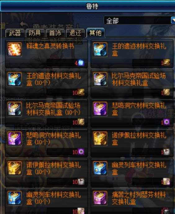 荒古的记忆碎片通过船长鲁特购买任务传说装备道具所需材料