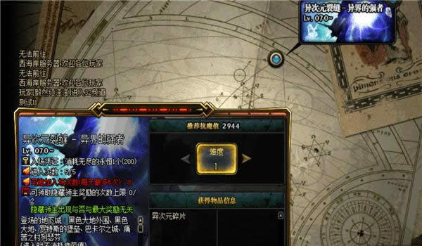 * 进入合并的异次元裂缝时,可以设置成“难度1/难度2/难度3”进入。