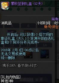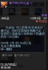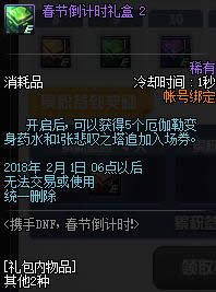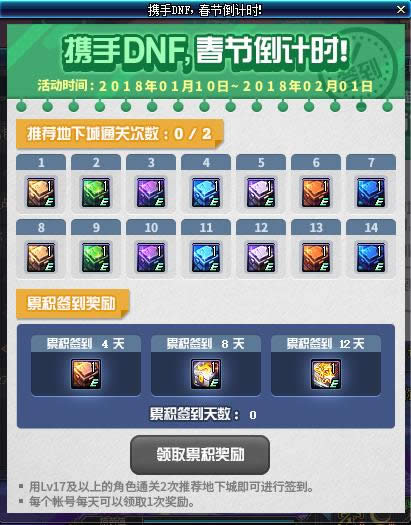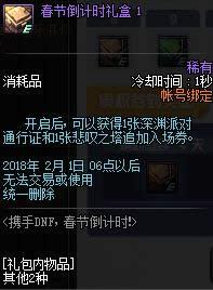 为各位带来携手DNF春节倒计时活动2018,参与到这次携手DNF春节倒计时活动网址2018中玩家们可以领取到非常不错的道具和礼包,下面我们就来看一看携手DNF春节倒计时活动奖励详情吧。