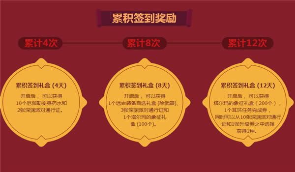 4.星期日可以累积签到2次累积签到达到4次、8次和12次还可获得累积签到奖励