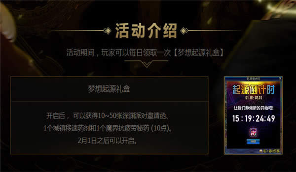 3.每日每账号可以领取一次【梦想起源礼盒】