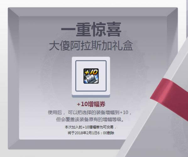 本次加入的+10增幅券为可交易,将于2018年2月1日6:00删除