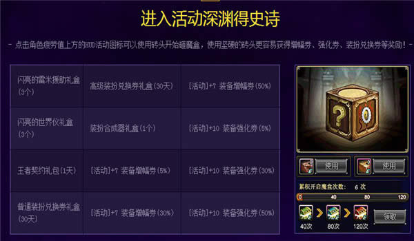为各位带来dnf魔盒正确的打开方式活动详情,参与到dnf魔盒正确的打开方式活动的玩家朋友们可以获得各种增幅和强化卷,下面我们就来看一看dnf魔盒正确的打开方式活动奖励介绍一览吧,大家可不要错过了哦。