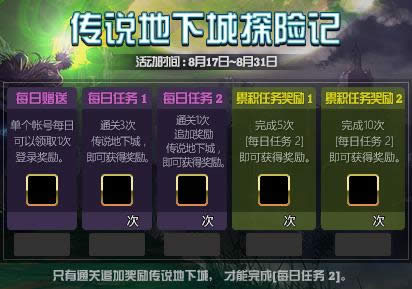 为各位带来dnf传说地下城探险记活动地址,参与到这次dnf传说地下城探险记活动的玩家朋友们可以获得各种物品道具奖励哦,下面我们就来看一看这次的dnf传说地下城探险记活动奖励介绍吧。