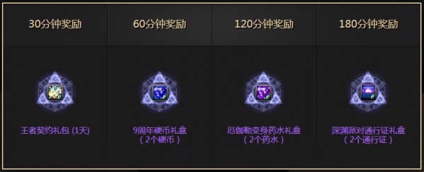 活动期间,每天只要在线达到一定时间(30,60,120,180分钟),即可直接领取当日奖励