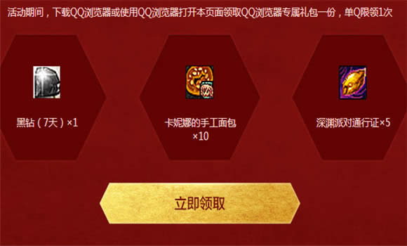 4、活动期间,下载QQ浏览器或使用QQ浏览器打开本页面即可领取QQ浏览器专属礼包一份,单Q限领1次;