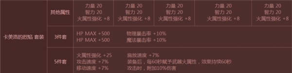 DNF卡美洛套装属性介绍