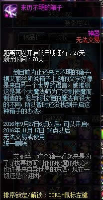 dnf来历不明的箱子是最近dnf活动的一个大热门,那么里面能开出什么东西?如何获得呢?这个箱子在9月27日之后即能开启,里面有不少好东西,一起随小编来看看吧!