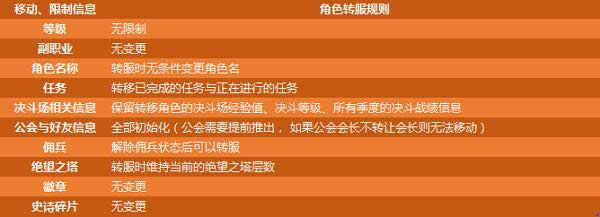 2、活动期间每个账号只能参与一次,并且只能转移1个角色;