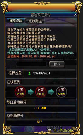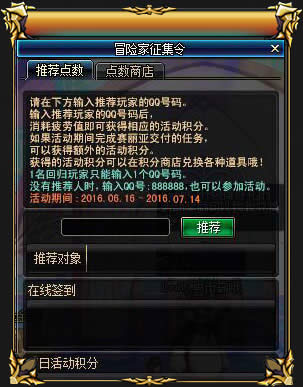 输入QQ号后,回归勇士即可正常地参与本次活动了,可以点击疲劳值上方 的活动图标查看本QQ号累积的活动点数。