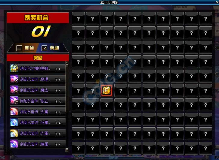 方法非常简单,玩家使用鼠标左键点击刮奖板的?号标识即可刮奖,点击后会展示出玩家所获得的游戏道具。