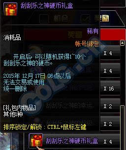 幸运刮刮乐有一定几率刮出刮刮乐之神的硬币,打开刮刮乐之神硬币礼盒也可以随机获得1-10个硬币哦。