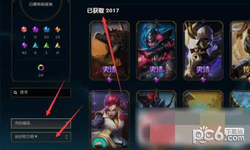 在下面点击出我的藏品还有按获得日期分类皮肤,这个时候就可以看到按年份排序的皮肤