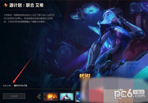 在左下角的位置就可以看到你获得这款皮肤的具体日期