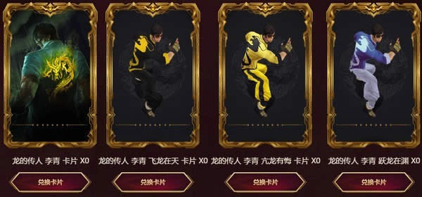 A:在某个特定的大区拥有龙的传人 李青皮肤,即可兑换1张 龙的传人 李青 卡片,每个大区仅限兑换一次。