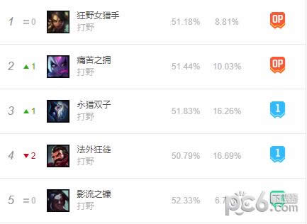 8.14加入的野怪猎手机制对野核进行了毁灭性打击,惩戒男刀也跟着躺枪了,对于敌方打野来说,这个恶心的玩法终于消失了。并且W技能的削弱也对男刀的推线能力造成了一定影响。风男现在可以正大光明的快乐了,已经冲进综合榜的TOP5了。